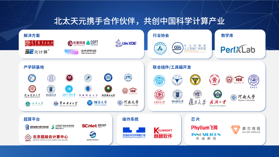 隨著信息技術(shù)自主可控逐漸成為國家戰(zhàn)略的核心內(nèi)容,信創(chuàng)的重要性日益突顯,它不僅關(guān)乎國家信息安全、數(shù)字經(jīng)濟(jì)發(fā)展,更是推動(dòng)教育教學(xué)改革、產(chǎn)業(yè)升級和社會(huì)數(shù)字化轉(zhuǎn)型的關(guān)鍵力量。作為中國國產(chǎn)科學(xué)計(jì)算與系統(tǒng)仿真軟件代表,北太天元深度融入國家信創(chuàng)生態(tài),并與國內(nèi)眾多廠商展開軟硬件適配合作。