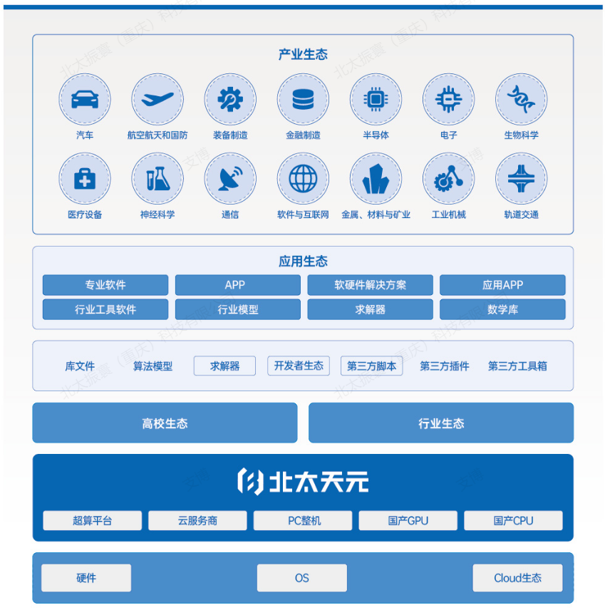 北太天元總體生態(tài)由多元專業(yè)軟件、開發(fā)者、用戶、服務(wù)商、硬件供應(yīng)商共同參與構(gòu)成。高校作為前沿技術(shù)攻關(guān)的重要陣地,依托北京大學(xué)科研成果轉(zhuǎn)化經(jīng)驗(yàn),北太天元已將高校作為其總體生態(tài)的基礎(chǔ)和核心,助力全國高校的教學(xué)、人才培養(yǎng)等方面工作。