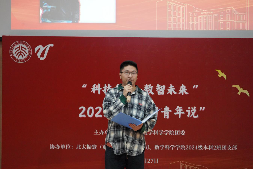 在紀念五四運動106周年之際,為傳承弘揚“愛國、進步、民主、科學”的五四精神,深切銘記習近平總書記“勤學、修德、明辨、篤實”“愛國、勵志、求真、力行”的諄諄囑托,2025年4月27日下午,北京大學數(shù)學科學學院于北京大學雙創(chuàng)中心大講堂舉辦“五四青年說”主題活動。數(shù)學科學學院1991屆本科生院友、誠邁科技董事長王繼平,數(shù)學科學學院1991屆本科生院友、北京大學出版社黨委副書記、副總編輯孫曄,北太振寰董事長(北京大學數(shù)學科學學院副教授、博士生導師)盧朓,數(shù)學科學學院2021級本科生鄭怡卓受邀擔任分享嘉賓,講述了他們關于熱愛、堅持與蛻變的青春故事。數(shù)學科學學院黨委副書記董子靜,團委書記毋澤鵬,團委常務副書記張力今、王迪,團委副書記郝欣怡及百余名同學參與此次活動?;顒佑晌銤声i主持。