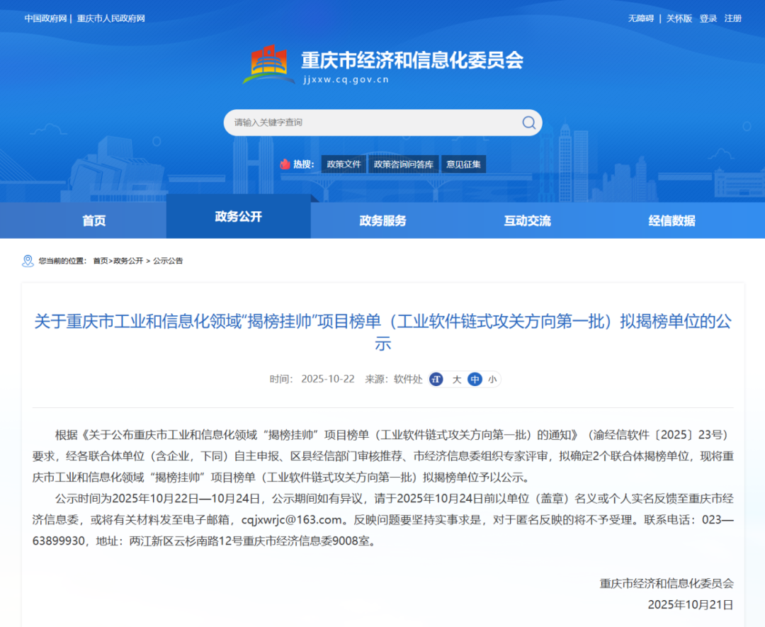 重慶市工業(yè)和信息化領(lǐng)域“揭榜掛帥”項目榜單(工業(yè)軟件鏈?zhǔn)焦リP(guān)方向第一批)揭榜單位名單