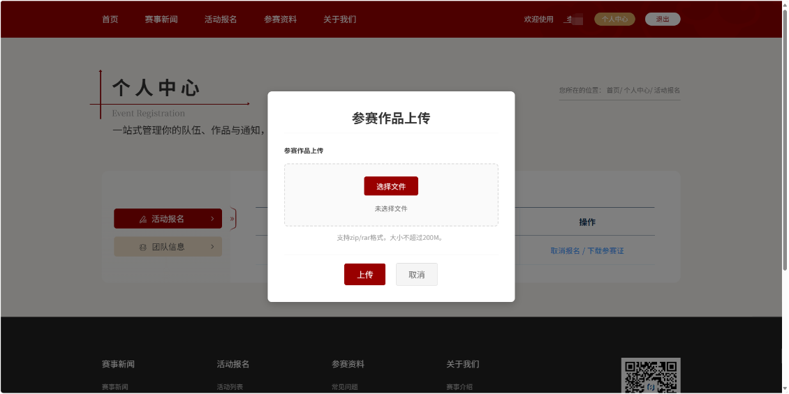 作品完成后,請將填寫好的“報(bào)名表”和“電子參賽證”,與參賽作品一起打包(zip/rar,不超過200M)上傳。